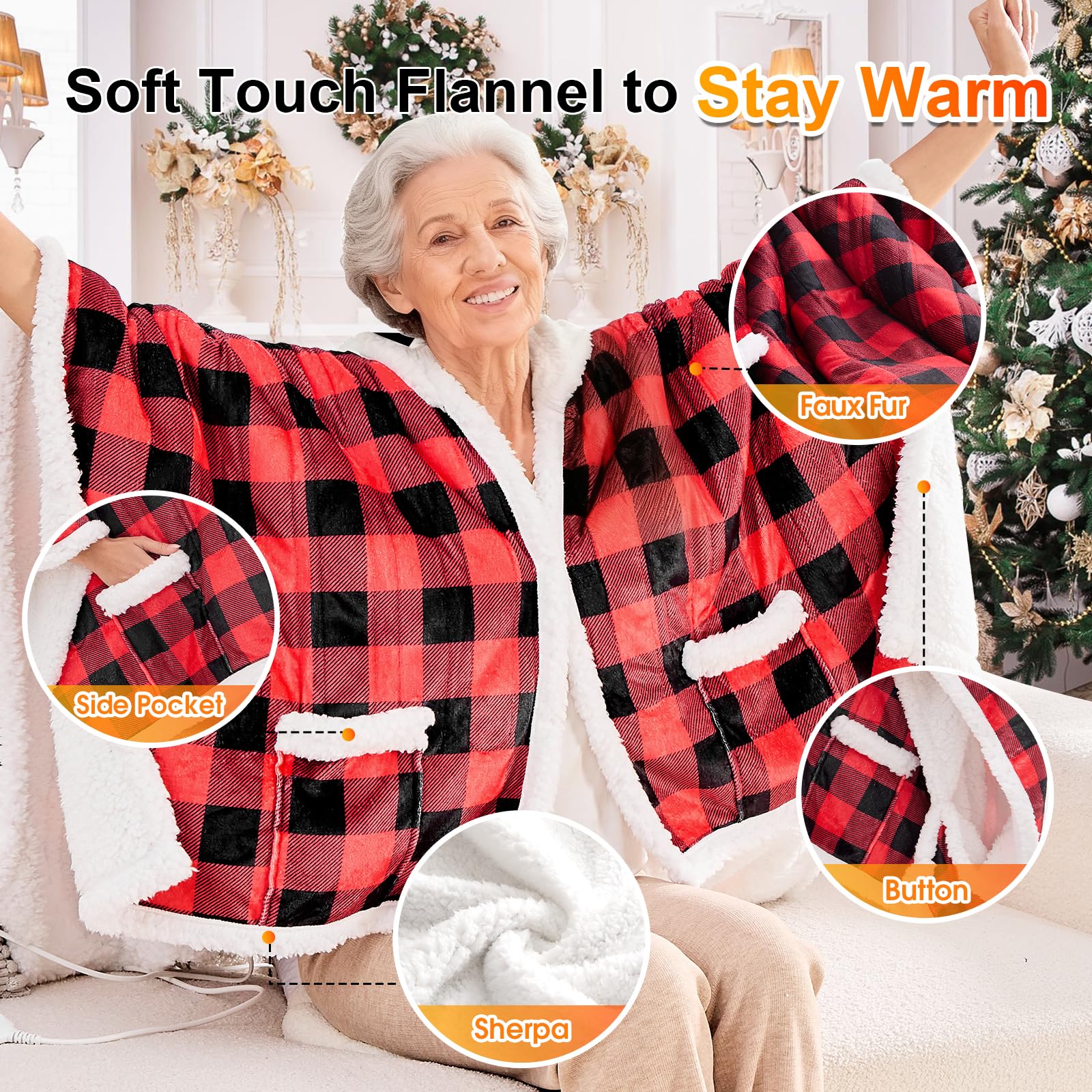 - Cozy Winter Companion: Are you looking for a cozy Christmas gift? Or a present for your wife, husband,mom, dad,grandma or seniors? Searching for that perfect gift for women who have everything? Or just a birthday gift? This heated wrap blanket is an ideal choice for friends and family, whether it is Valentine's Day, birthdays, Mother's Day, Thanksgiving, New Year or holidays.A variety of colors are available to choose from, ensuring that every loved one can receive their favorite gift