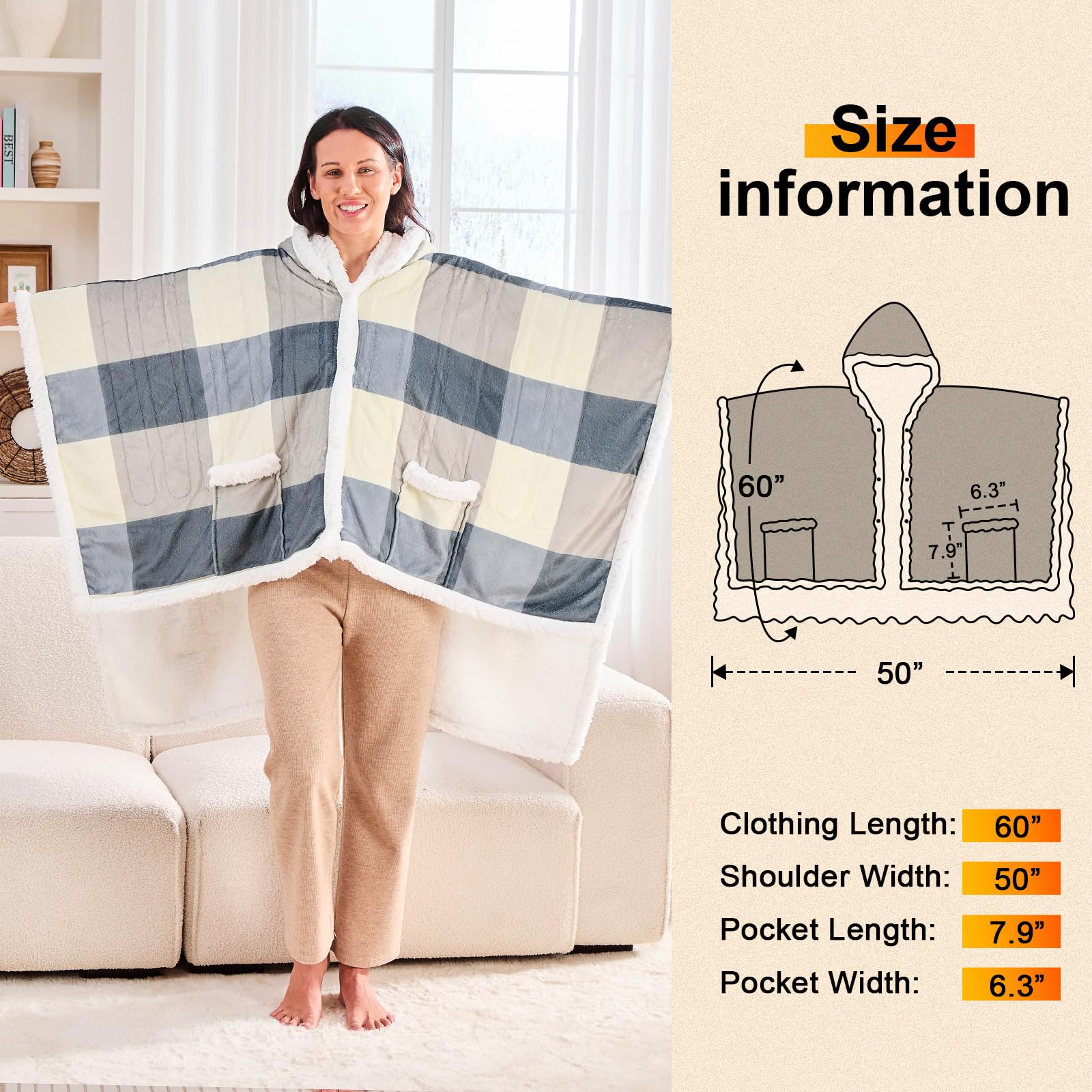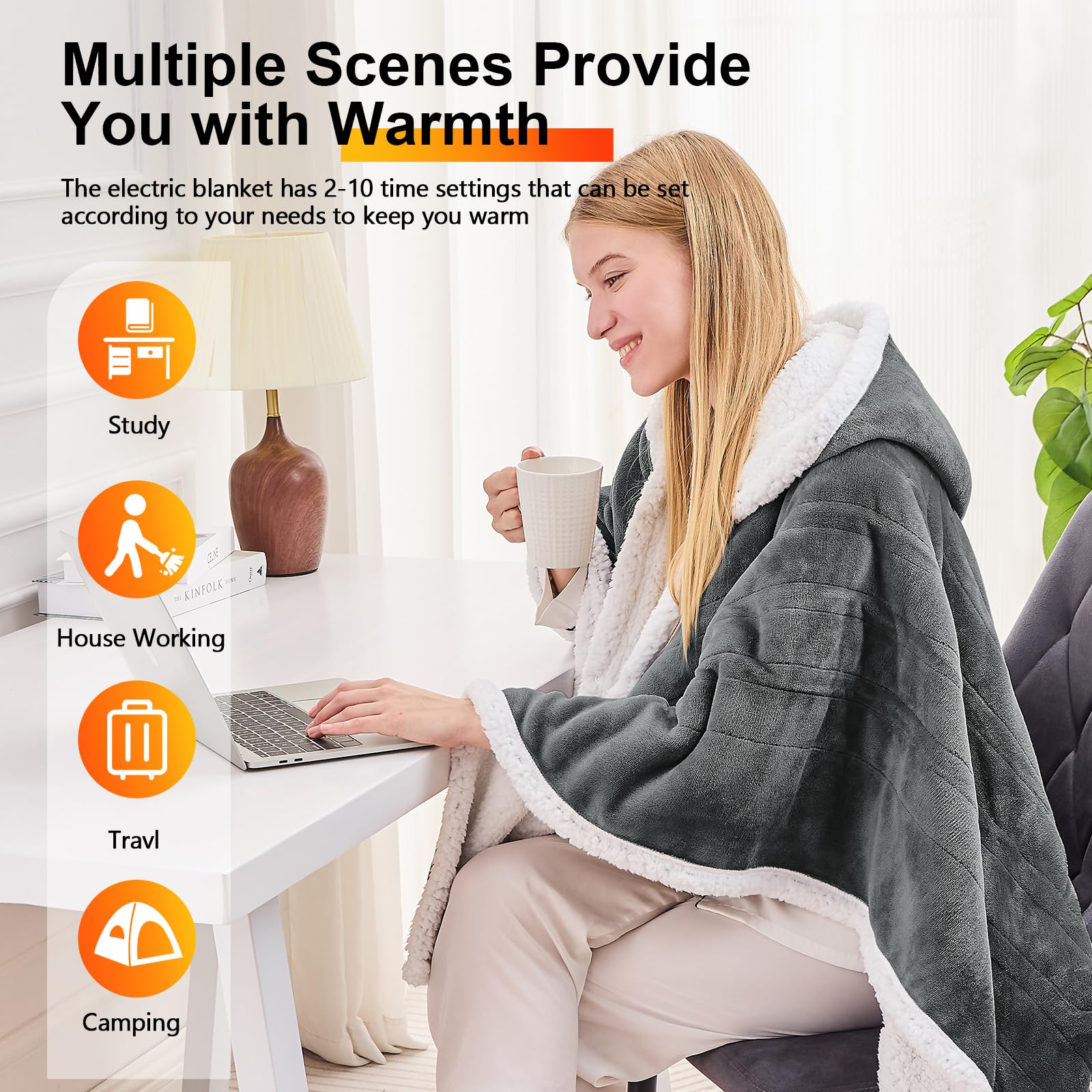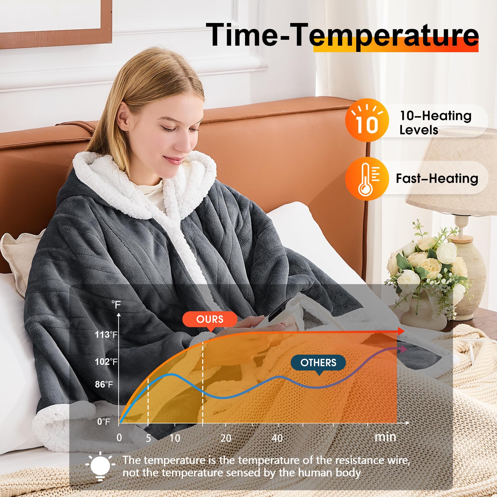 Wearable Heated Blanket Electric Snuggle - Heated Blanket with Foot Pocket and Sleeves for Adult, Winter Christmas Gifts for Mom Women 5-Position Timer 10-Heating Levels,50 * 70",Grey